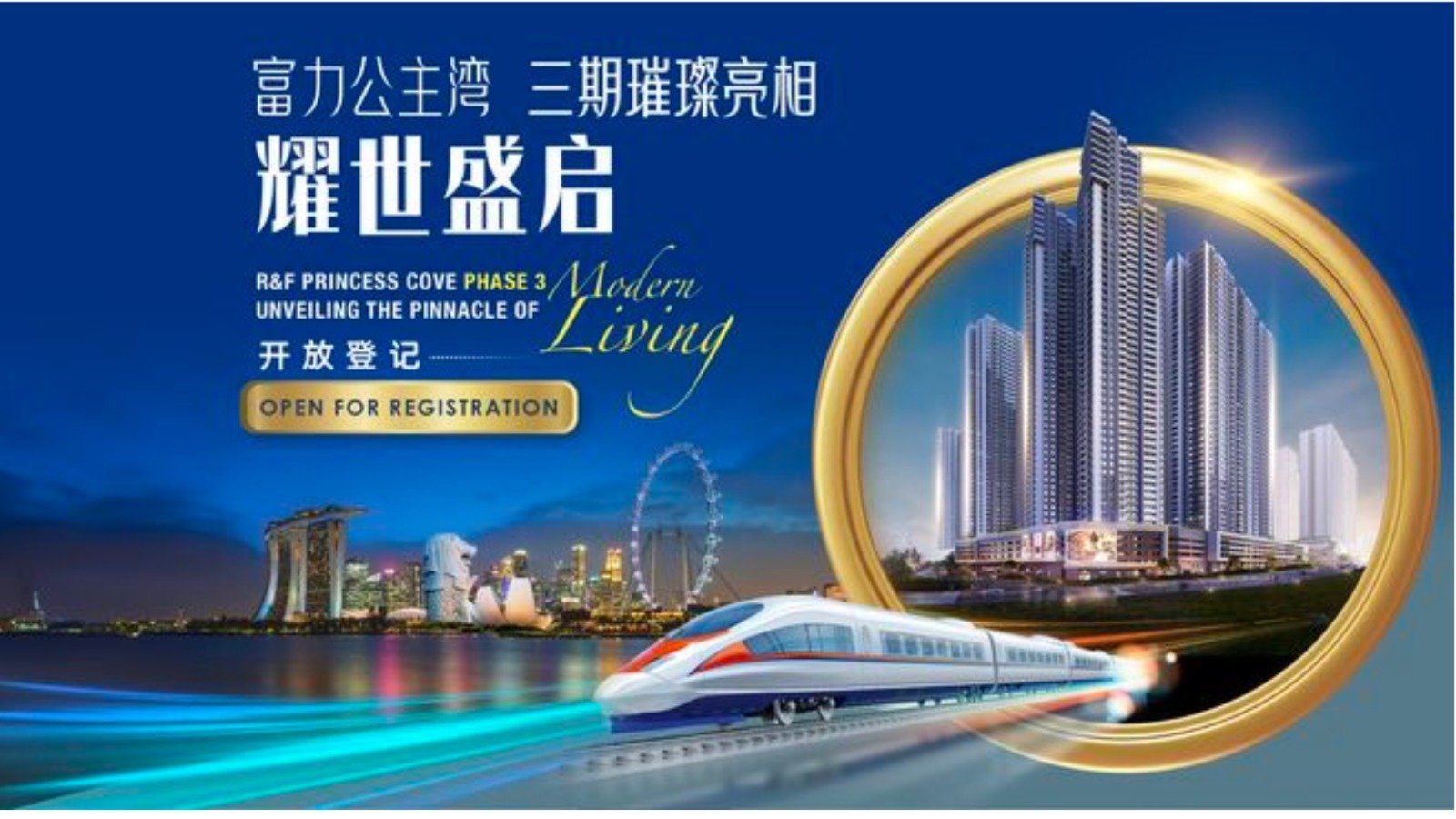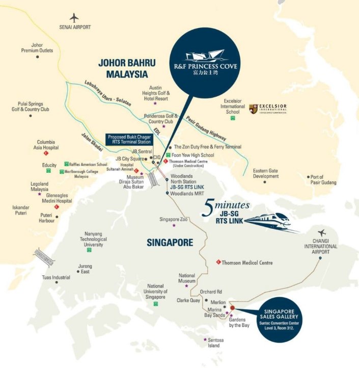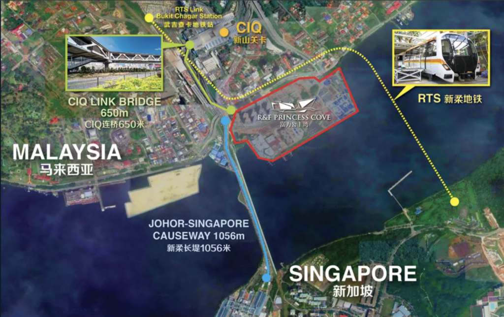 R&F Princess Cove is located on the opposite side of Singapore and at the central business district of Iskandar Special Economic Zone in Johor Bahru, the second largest city in Malaysia. It is only 1056 meters away from Singapore and is expected to become the new urban benchmark for Singapore and Malaysia.